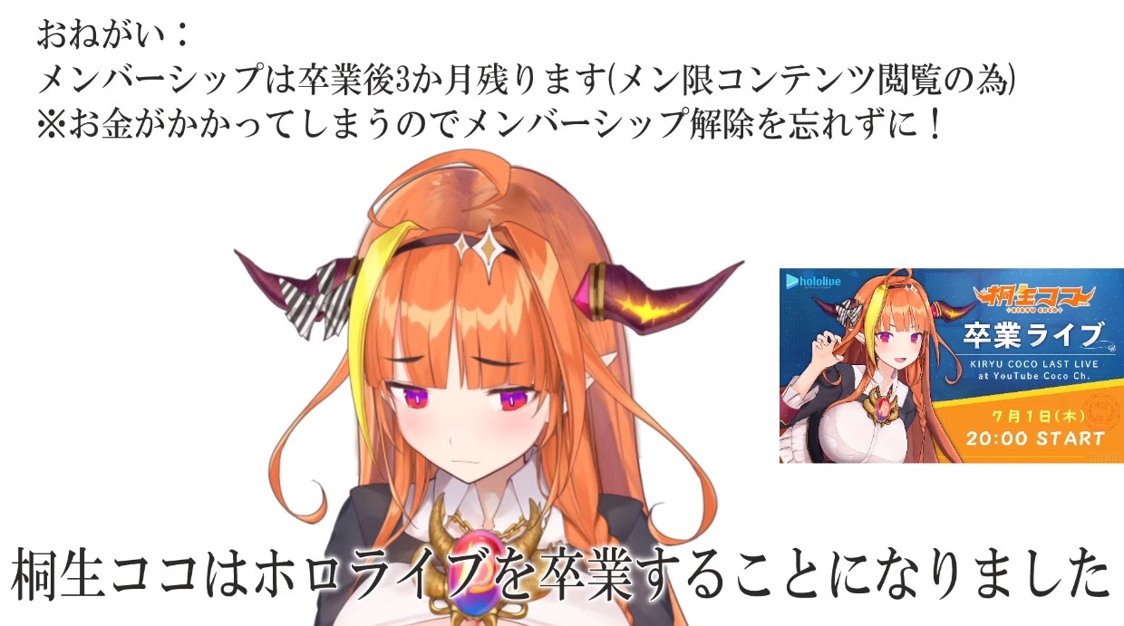 Hololive 旗下 vtuber「桐生可可」宣布畢業 7 月 1 日將舉行畢業演唱會.